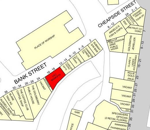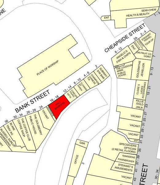 The property comprises a large double shop unit which has an extensive display frontage to Bank Street, and which provides accommodation over ground and basement floors. The property is part single storey over basement in height but also extends into an adjoining two storey building.